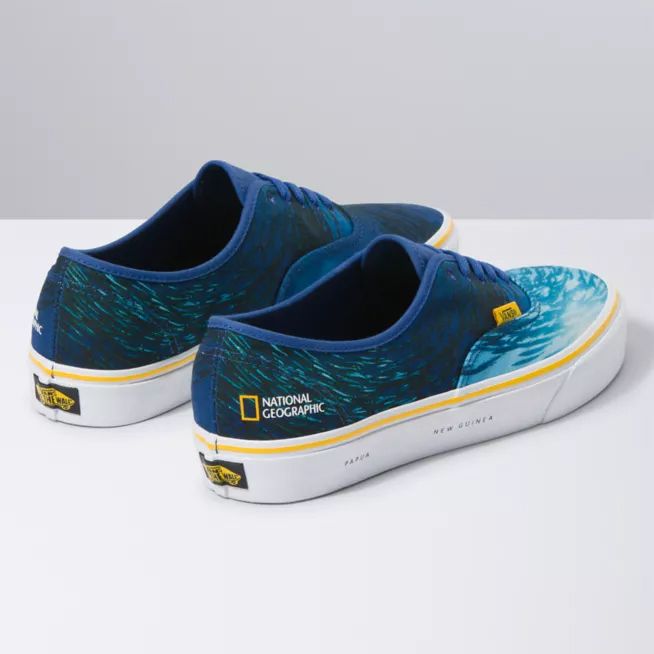 Vans x National Geographic Authentic có thiết kế độc đáo với hình ảnh đại dương xanh “mướt mắt” được in bao phủ trên toàn bộ upper. Công nghệ in cao cấp của Vans cho ra hình ảnh họa tiết cực sắc nét và sống động. Ngoài ra, bạn hãy thử tìm kiếm tọa độ được in trên viền đế của đôi giày, chắc chắn bạn sẽ thấy điều rất thú vị!